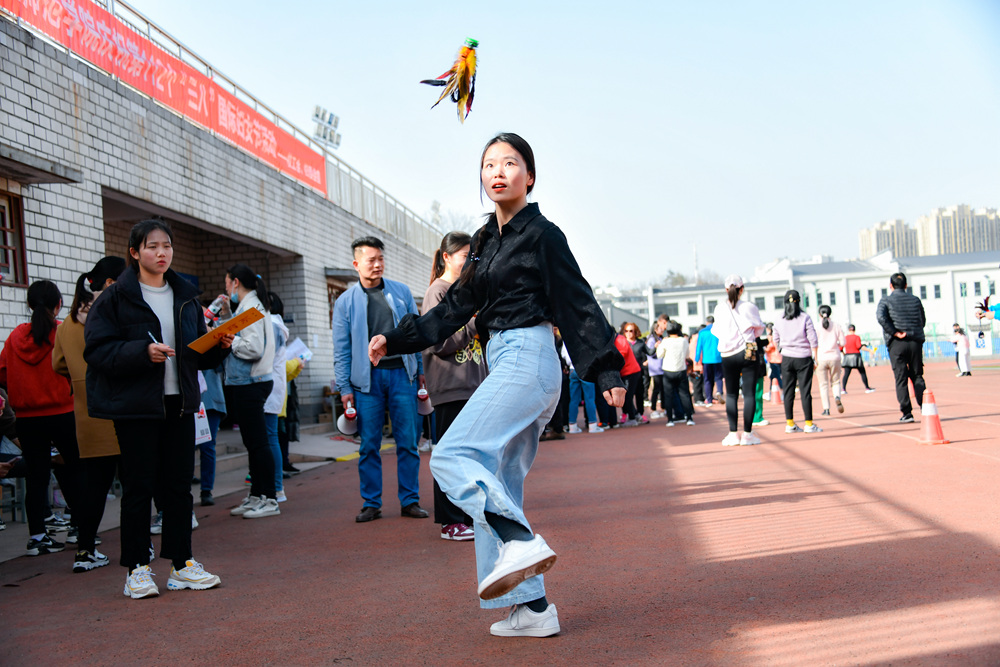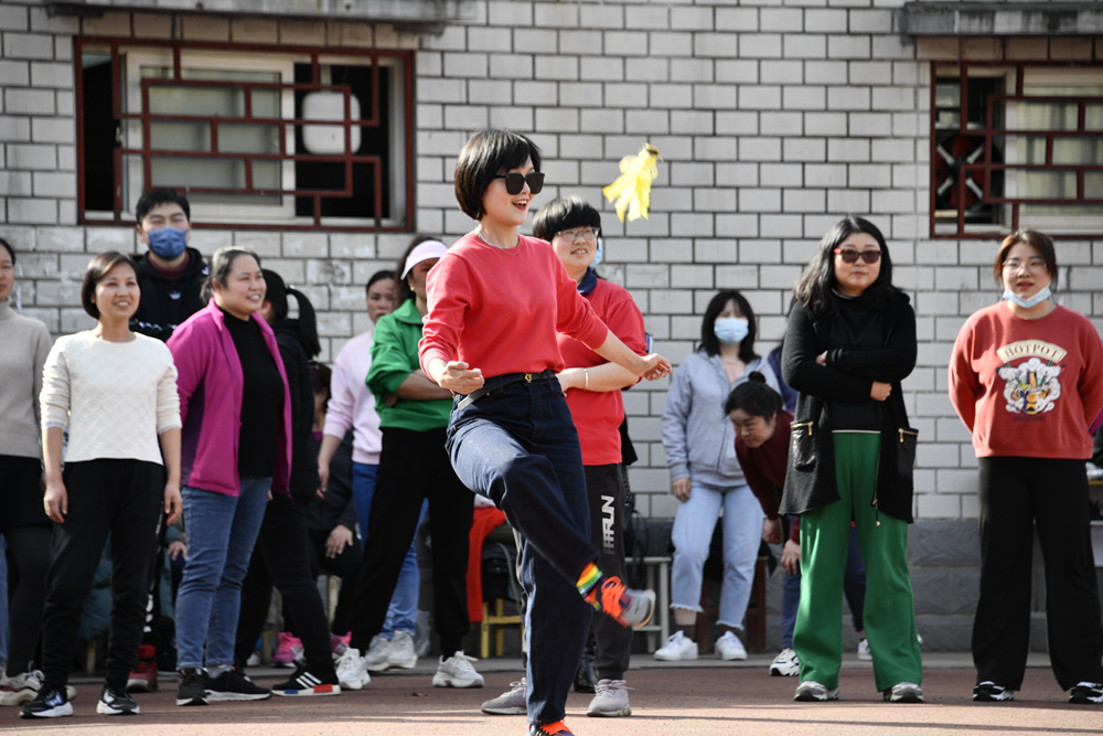 活动包括踢毽子和跳绳比赛两个内容。踢毽子为个人比赛项目,比赛时间虽然只有短短的1分钟,但在激烈的比赛中,参赛教职工们都表现出了奋勇争先的体育竞技精神,纷纷踢出了自己的看家本领,随着五彩的毽球在空中飘逸地飞舞,迎来了不断的喝彩。跳绳比赛为集体项目,共九支队伍参赛,以3分钟内跳绳总数为最终成绩。裁判员发令枪响起,比赛正式开始,选手们精神抖擞,用一个个轻盈腾空跃起的姿势勾勒出动感活力的身影。运动员们配合着长绳以飞快的速度跳了起来,摇绳的队员时刻专注着,努力配合着选手起跳的节奏。刹那间,摇绳的击打声、嘹亮的呐喊声随着跳跃的身影此起彼伏,整个田径场成为了一片欢乐的海洋。