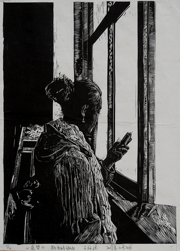版画《遥望》 王妍妮(美教2007级)