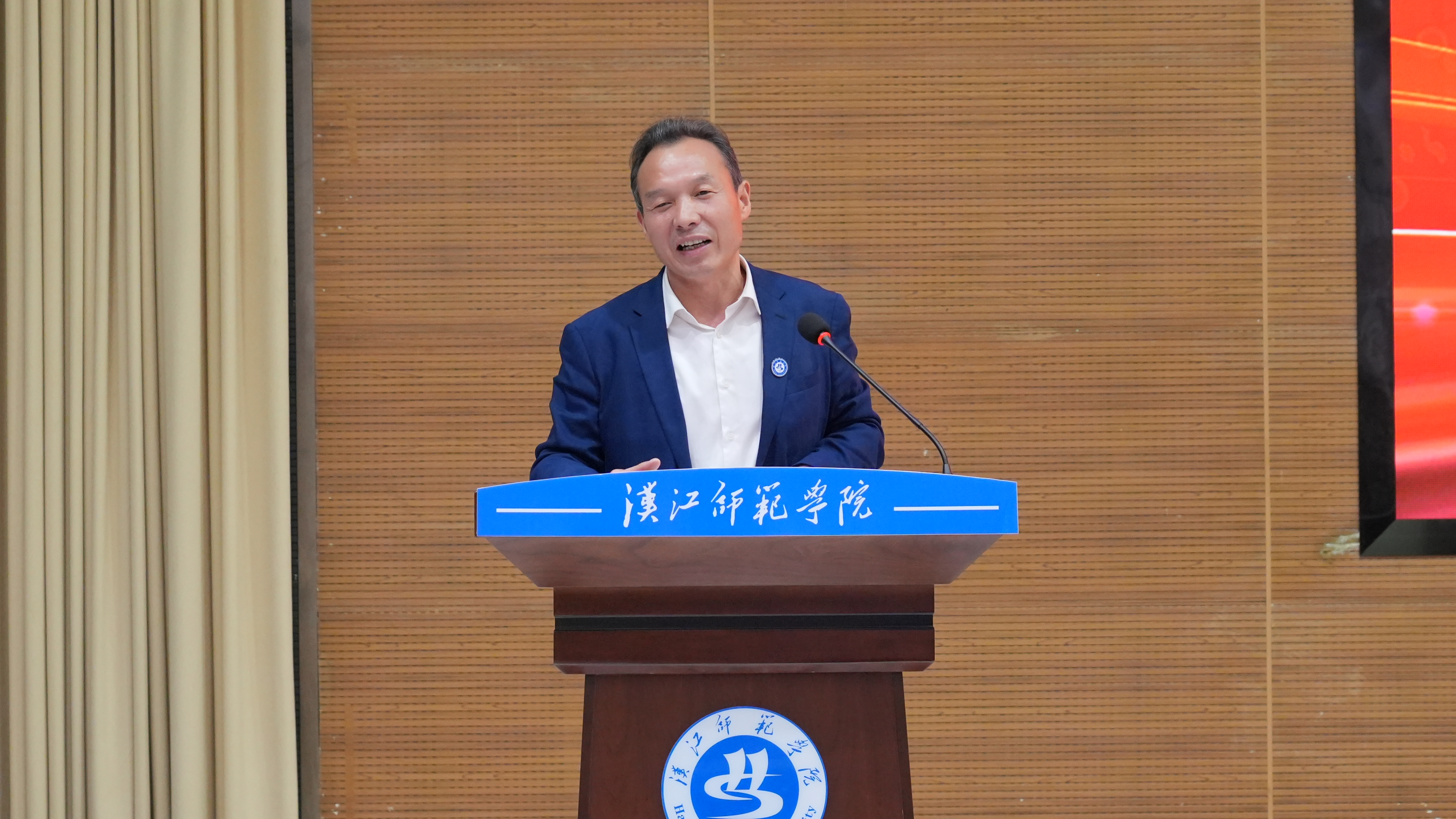 校党委副书记周明华向新生致以热烈欢迎,并宣读军训优秀学员名单。针对“如何度过有意义的大学生活”,他提出三点建议:一是秉持“时时不懈怠”的责任心,以长期主义打磨专业基本功——正如学院民乐团二十年来扎根地方文化、深耕道乐演绎,同学们需始终保持热情,对自己、对专业、对社会负责;二是心怀“处处扎根大地”的使命感,与祖国发展同频共振——艺术不应局限于“象牙塔”,学院已与十堰市相关部门共建研究中心,持续开展地方文化服务项目,希望同学们主动走进群众,创作出有生命力的作品;三是扛起“创艺术佳品”的担当,以青春锐气书写成长篇章——此前学院师生曾共同克服困难,创作南水北调中线工程主题长卷,作品获得广泛赞誉,期待同学们延续这份执着,勇于探索艺术新路径,打磨更多精品。