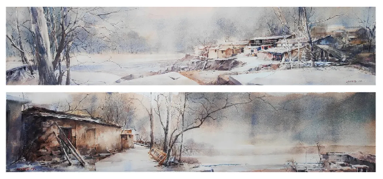 湖北师范大学 王勇刚《太行村景》水彩25cm×114cm×2
