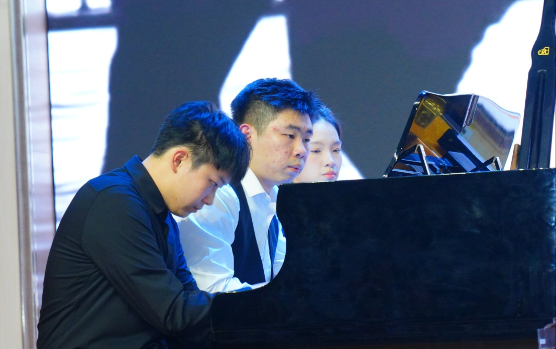 2025届校友陈新坤则以钢琴四手联弹《皮亚佐拉》登台,与在校同学默契配合,在张雅然老师的指导下,将阿根廷探戈音乐的节奏张力与情感层次展现得淋漓尽致。演出结束后,他动情地表示:“回校表演就像‘回家’,看到台下学弟学妹眼中对音乐的光,仿佛也看到了曾经的自己。希望我们的演出能传递‘坚持所爱’的信念,未来我也很愿意继续为母校的艺术活动贡献力量。”