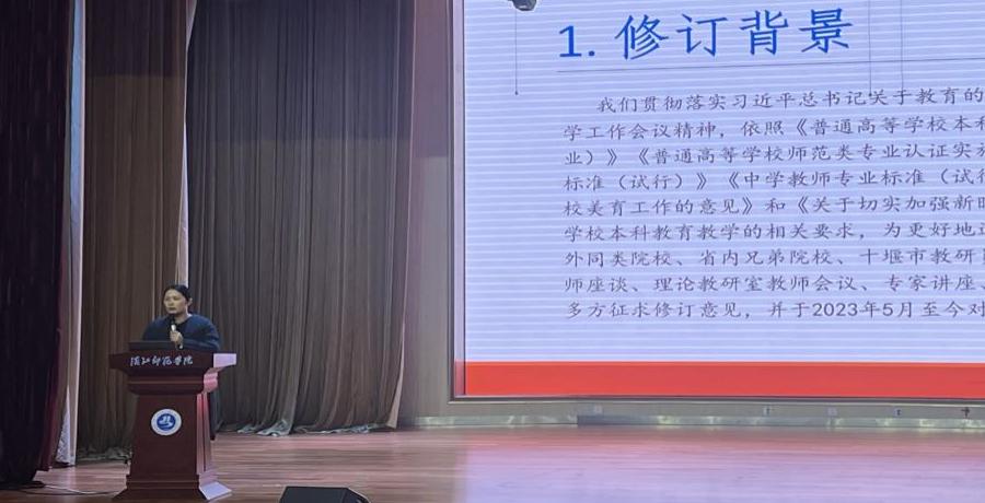 音乐学专业负责人李丽博士从人才培养方案的角度进行专题讲解,详细阐释了课程体系、能力结构、实践教学与产出导向等方面的优化举措。她强调,人才培养方案是认证工作的核心依据,全体教师学生应深入理解、严格执行,确保教学实施与培养目标高度契合,推动专业建设持续改进。