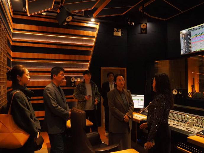 随后,在广外艺演艺学院副院长王琼旎的陪同下,先后参观了歌舞孵化与音乐剧制作实训基地、数字演艺开放型区域产教融合实践中心等教学实训场所,实地考察了实训基地建设及产教融合平台搭建方面的具体举措与成果。