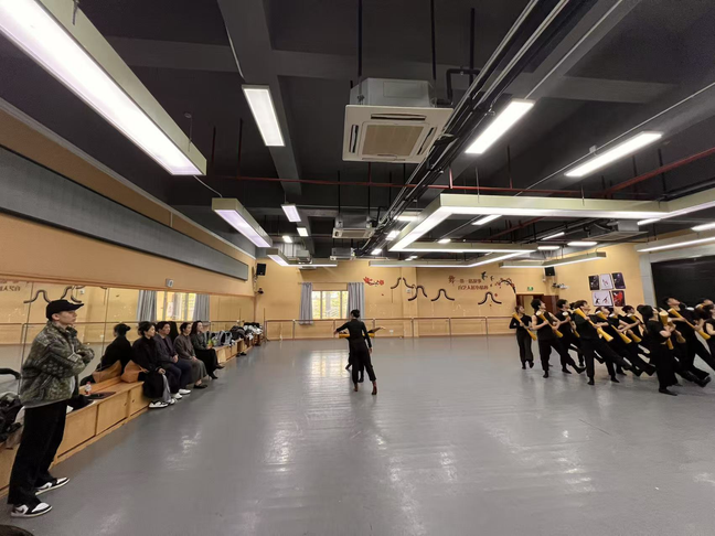 在舞蹈教研室主任吴永健的引导下,我校老师参观了舞蹈实训教室,现场观摩了原创舞蹈《犁》,并与广外演艺学院教师就舞蹈专业课程体系搭建、实践教学落地等具体问题展开了交流。