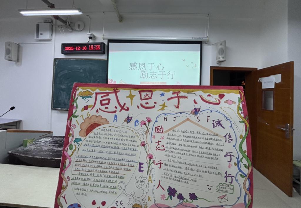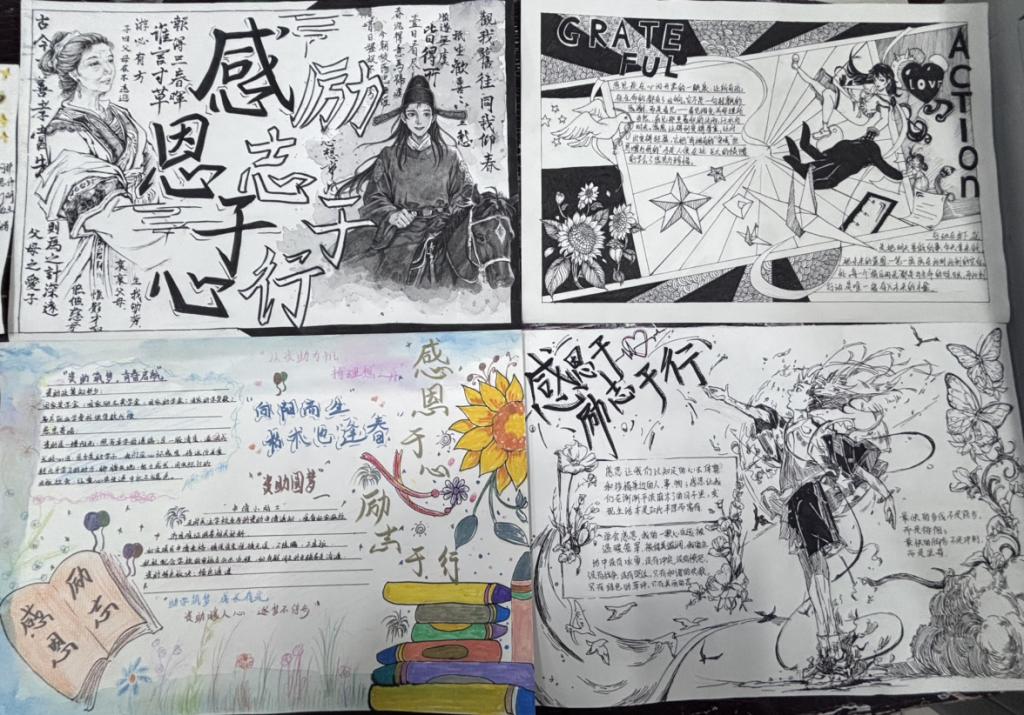 12月10日,我院尚艺楼B405举办“感恩于心,励志于行”主题手抄报比赛。同学们作品围绕“感恩”与“励志”主题,生动表达对父母养育、师长教诲、同窗情谊的真诚感谢,亦融入了对未来的憧憬、对理想的追求,体现了学子们真挚的情感与积极的人生态度。
