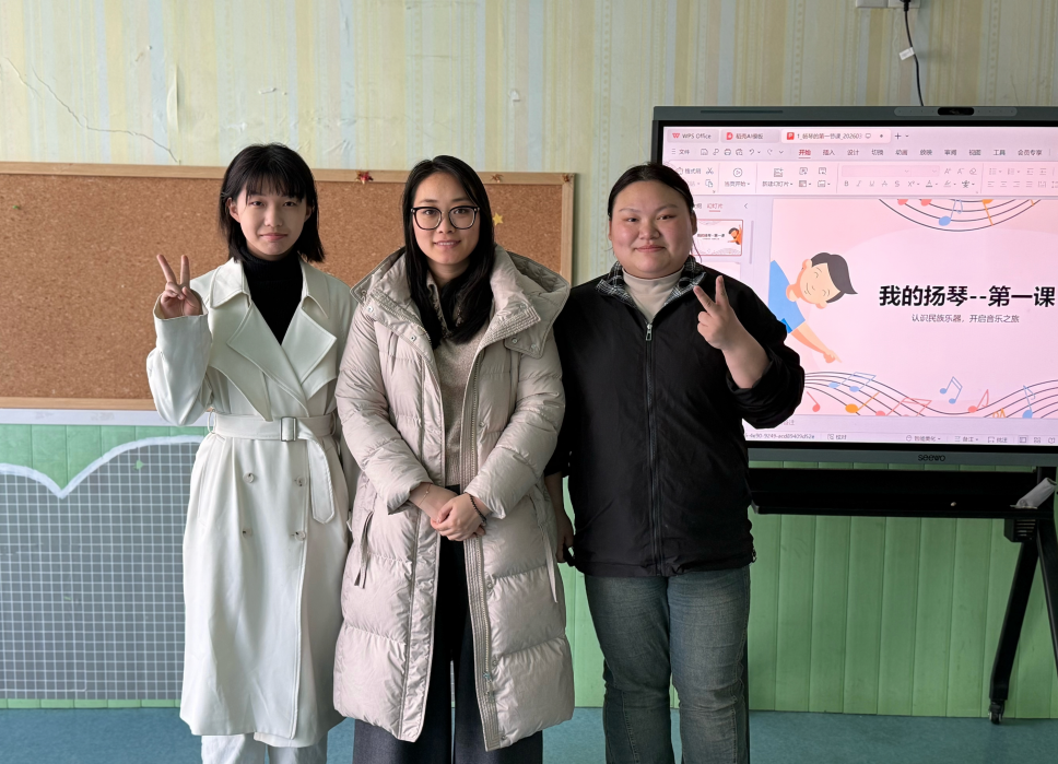 教学过程中,柯晨全程跟进指导,三名学生结合自身专业所学,将扬琴艺术与幼儿教学特点有机融合,以生动易懂的方式引导幼儿认识扬琴、感受其音色的独特魅力,让孩子们在轻松愉悦的氛围中接触并了解传统器乐文化。