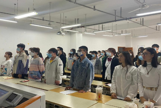 与党的二十大现场同步,入党积极分子全体起立,奏唱中华人民共和国国歌。为毛泽东、周恩来、刘少奇、朱德、邓小平、陈云等已故老一辈无产阶级革命家和革命先烈默哀。